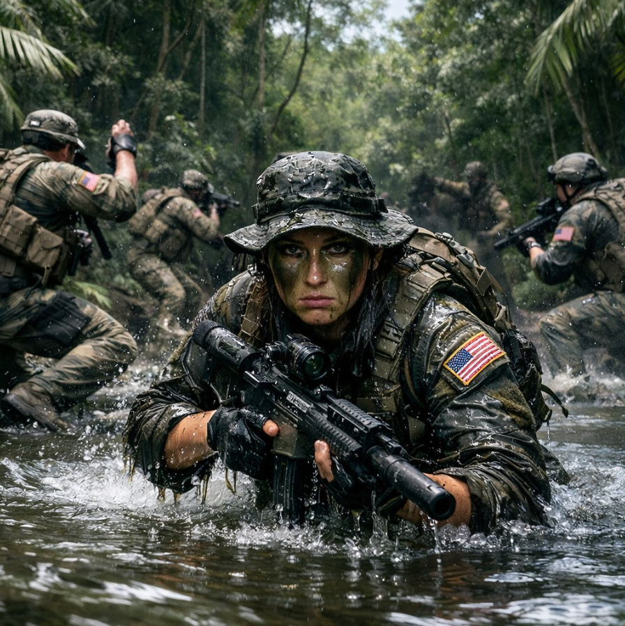 Porucznik Mark Reigns leżał wciśnięty w błoto północnego brzegu, z policzkiem przyklejonym do mokrej ziemi. Broń była praktycznie bezużyteczna – lufa zapchana mułem i wodą, zbyt wiele kątów, zbyt mało widoczności. Dżungla skurczyła się do wąskiego tunelu, a tunel miał tylko jedno wyjście: tam, skąd nadlatywały kule.