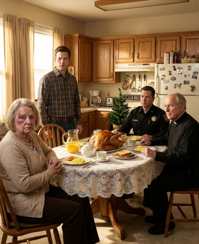 Na honorowym miejscu siedział szeryf Wallace Price. Kapelusz leżał na krześle obok, mundur był nienagannie wyprasowany, a wyraz twarzy stanowczy, lecz nie pozbawiony życzliwości. Obok niego siedział pastor Amos Fletcher z Pierwszego Kościoła Baptystów w Ashford, z dłońmi splecionymi na kolanach i spojrzeniem pełnym smutku oraz determinacji. Po przeciwnej stronie stołu znajdowała się moja siostra, Darlene Whitby, która przyleciała pierwszym lotem z Ohio po moim telefonie — drżącym, choć jeszcze bez wyjaśnień.