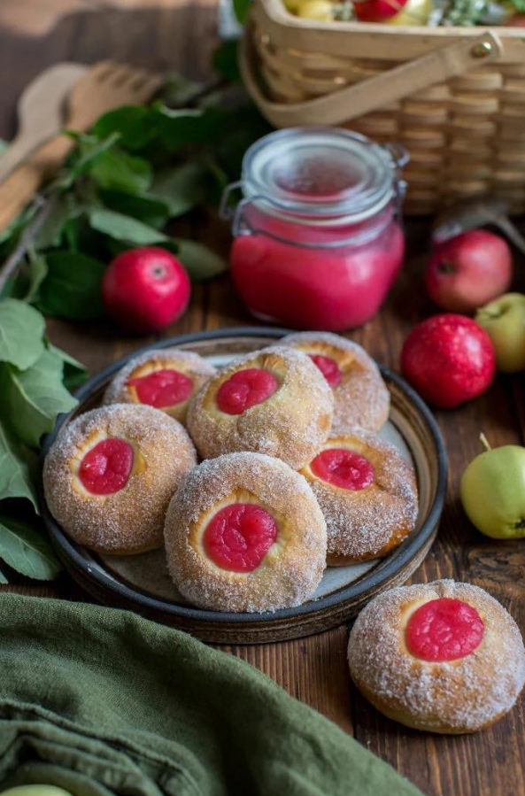 Oczywiście, jeśli nie chcesz, aby bułeczki były różowe, możesz je również wypełnić zwykłym musem jabłkowym!