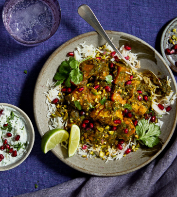 Superzielone curry z łososiem i słodkimi ziemniakami to aromatyczne, a jednocześnie lekkie danie inspirowane kuchnią indyjską, które łączy delikatną rybę, kremowy sos pełen zielonych liści oraz rozgrzewające przyprawy. Towarzysząca mu raita z nasion chia wprowadza świeżość i przyjemny kontrast, równoważąc intensywność curry.