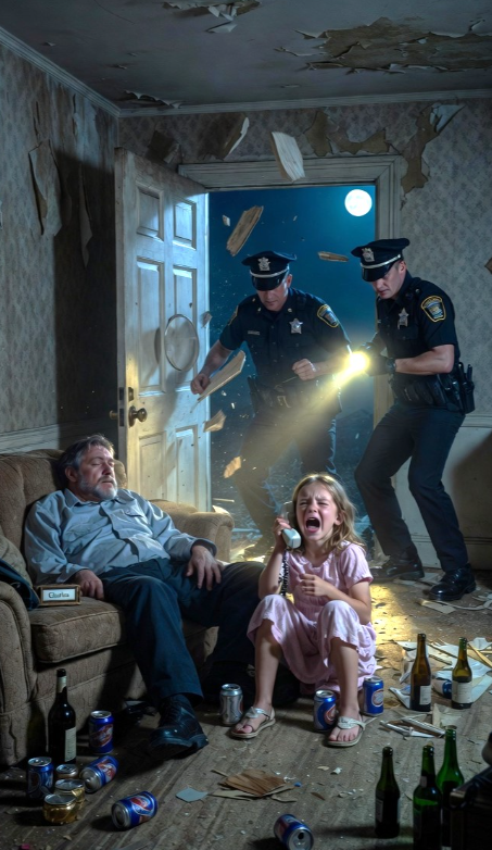 Z salonu dobiegł ciężki, rytmiczny stuk. Ojciec się poruszył. Panika, zimna i absolutna, sparaliżowała mnie. Upuściłam słuchawkę, kabel zakołysał się jak wahadło, a ja rzuciłam się do swojego pokoju, chowając się w szafie dokładnie w chwili, gdy drzwi wejściowe do domu zaczęły jęczeć.