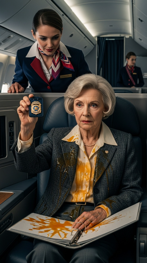 Kilku pasażerów pierwszej klasy poruszyło się niespokojnie. I wtedy, z powolną, niemal teatralną precyzją, Victoria przechyliła kubek. Lepki, pomarańczowy płyn rozlał się po kolanach Eleanor, nasiąkając drogi garnitur, federalne dokumenty i elektroniczną teczkę stojącą u jej stóp.