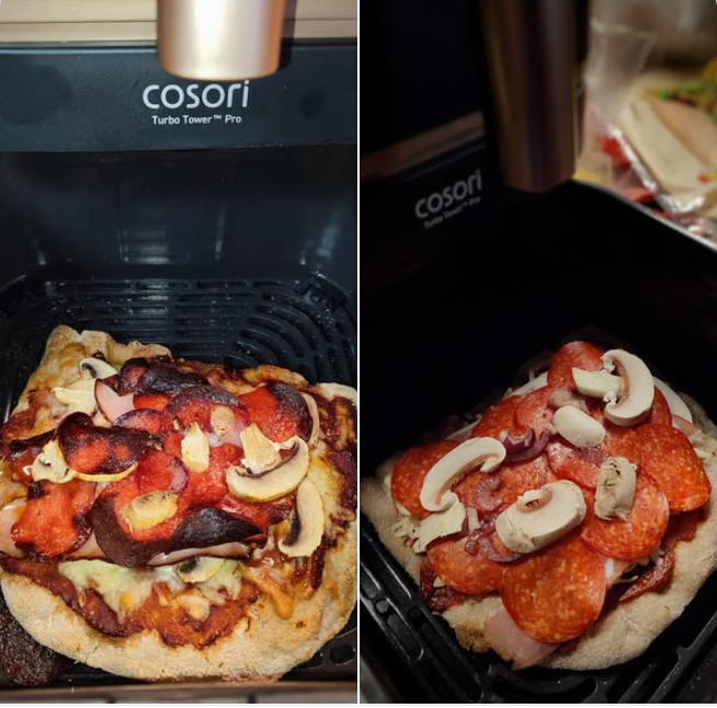 🍕 Quick pizza from an air fryer (from the bottom of a ready-made pin). To bardzo szybki sposób na domową pizzę przygotowaną na gotowym spodzie typu pinsa. Dzięki airfryerowi całość piecze się błyskawicznie, a brzegi stają się przyjemnie chrupiące. Warstwa sera delikatnie się rumieni, a dodatki równomiernie podgrzewają. To świetna opcja na ekspresowy obiad lub kolację, zwłaszcza gdy masz ochotę na coś ciepłego i sycącego bez długiego wyrabiania ciasta.