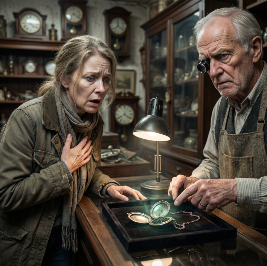 Pewnego deszczowego popołudnia, czekając na przegląd samochodu, weszłam do niewielkiego sklepu z antykami w pobliżu warsztatu. Pachniało tam kurzem i olejem, a wnętrze wypełniały tykające zegary i przytłumione światło lamp. Za ladą siedział starszy zegarmistrz, Henry Wallace, pochylony nad mechanizmem zegarka i patrzący przez lupę. Kiedy nachyliłam się, by obejrzeć kieszonkowy zegarek, mój naszyjnik wysunął się spod swetra.