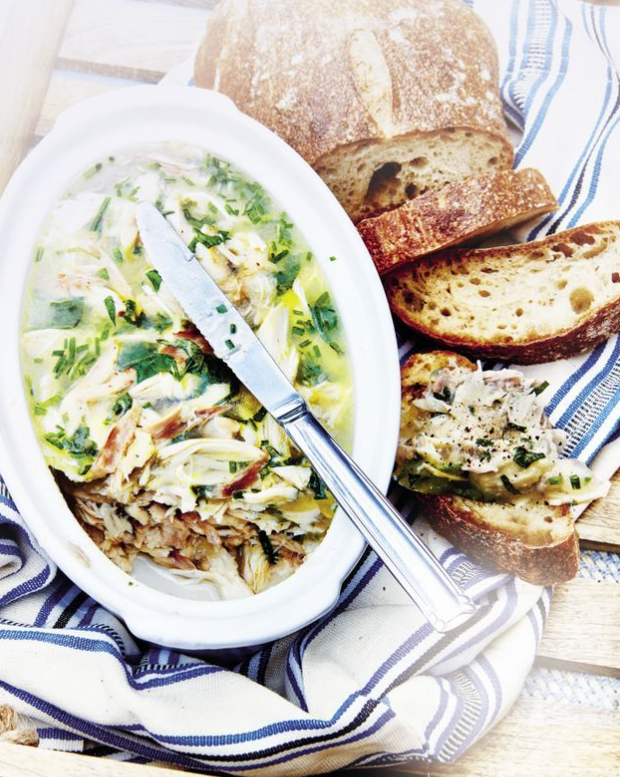 Terrina z kurczaka w białym winie i ziołach to klasyczne danie kuchni francuskiej, które łączy w sobie prostotę składników z elegancją podania. Jest to potrawa podawana na zimno, idealna zarówno jako przystawka na uroczysty obiad, jak i element domowego bufetu czy kolacji w gronie gości. Dzięki długiemu, powolnemu gotowaniu oraz naturalnej żelatynie uzyskanej z nóżek cielęcych, terrina zyskuje zwartą, ale delikatną strukturę, a mięso pozostaje soczyste i aromatyczne.