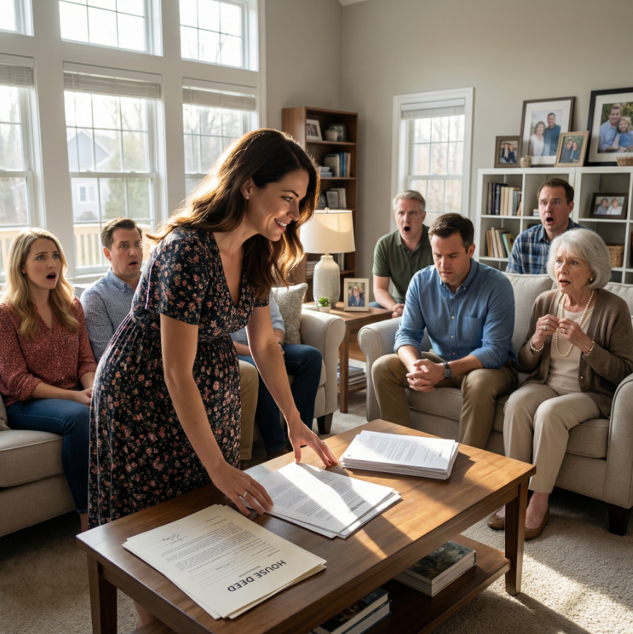 Usiadłam z powrotem. „Kiedy Ethan miał długi po nieudanym biznesie, bank nie zgodził się na jego współwłasność. Moi rodzice wpłacili wkład własny, a prawnik zaproponował, by dom był zapisany wyłącznie na mnie — dla stabilności. Wszyscy byliście wdzięczni, że w ogóle mamy gdzie mieszkać.”