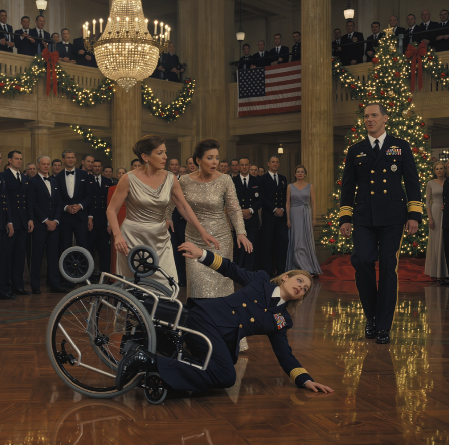 Nienaganne mundury, srebrne odznaki, historie o lotach opowiadane szerokimi gestami, jakby każde słowo było dowodem odwagi. Stałam tam w prostej granatowej sukience, patrząc przez okno na migające światła pasa startowego w nocnej Wirginii.