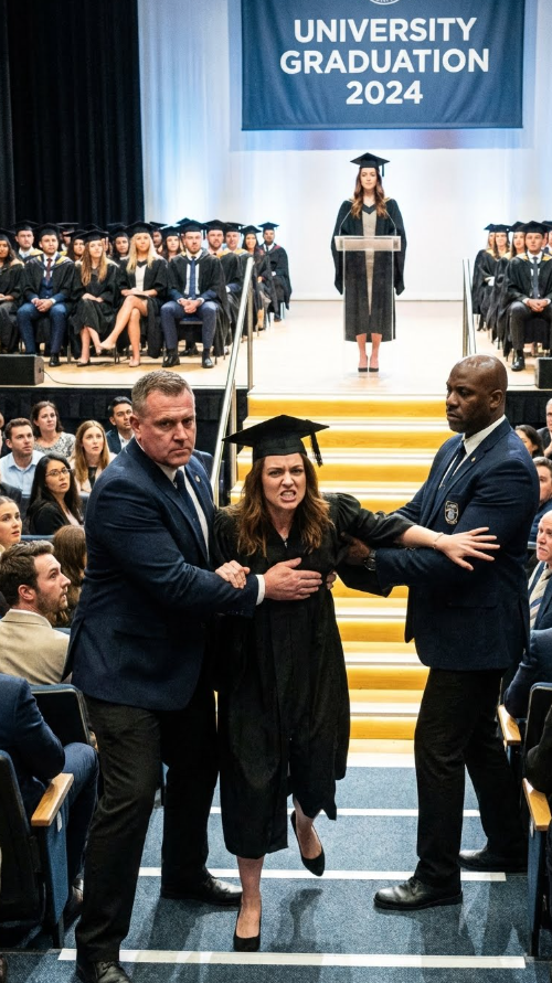 Tuż przed rozpoczęciem ceremonii, gdy stałam za kulisami w nieznośnym upale, poprawiając szarfę Valedictorian, moi rodzice podeszli do mnie i odcięli mi drogę.
