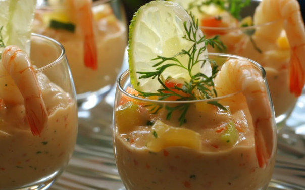 Verrine z krewetkami i mango z limonką to przystawka, która zachwyca prostotą, świeżością i efektownym wyglądem. Połączenie delikatnych krewetek, słodkiego mango i orzeźwiającej limonki tworzy harmonijną kompozycję smaków, idealną na każdą okazję – od letnich spotkań w ogrodzie, przez eleganckie kolacje, aż po świąteczne przyjęcia.