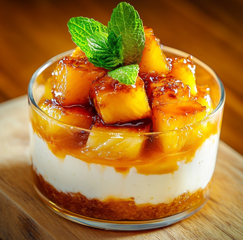 Verrines z pieczonym ananasem i kremem z ricotty to elegancki, a jednocześnie prosty deser warstwowy, który łączy w sobie kontrastujące tekstury i smaki. Krucha, maślana baza z ciasteczek stanowi solidny fundament dla delikatnego, puszystego kremu oraz soczystych, lekko skarmelizowanych owoców. Całość zachwyca nie tylko smakiem, ale również wyglądem, dzięki wyraźnie widocznym warstwom zamkniętym w przezroczystych szklankach.
