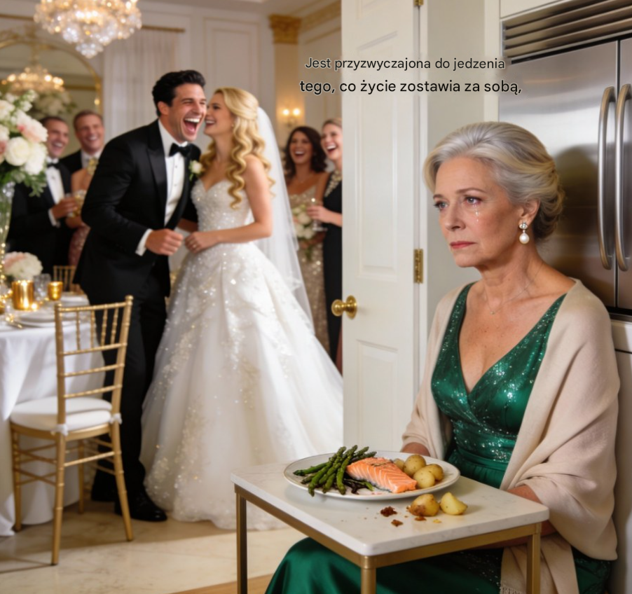 Usadzono mnie przy odosobnionym stoliku, niemal przy samych drzwiach kuchni. Goście mijali mnie bez spojrzenia, nikt nie podszedł, by mnie przywitać, nikt nie zapytał, jak się czuję. Stałam się elementem tła, kimś, kogo obecność nie miała znaczenia.