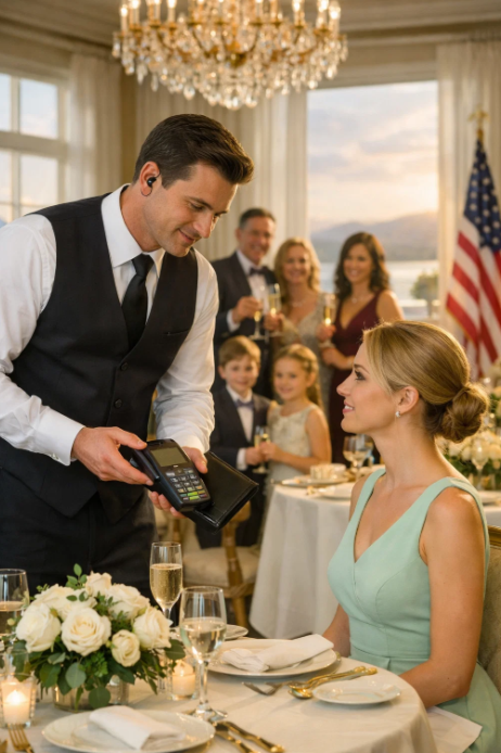 „Wystąpił drobny problem z płatnością przy stole państwa rodziny” — kontynuował Daniel. — „Karta przypisana do konta została przed chwilą odrzucona. Poinformowano nas, że jest pani w drodze z inną kartą”.