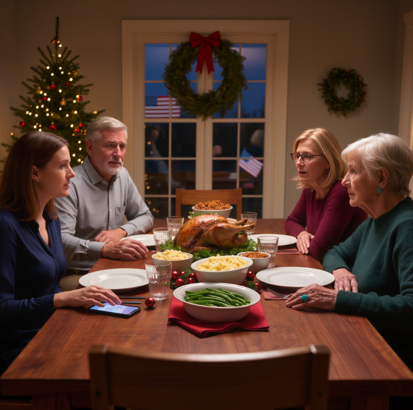 Wszyscy przy stole zaczęli przenosić wzrok między nami, zdezorientowani i głodni kontekstu. Zapach sosu i żurawiny nagle stał się ciężki, mdlący.