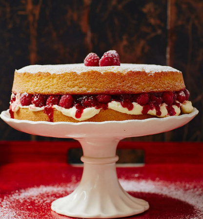 Ciasto jest miękkie, puszyste i aromatyczne dzięki dodatkom wanilii i cytrynowej skórki, a pożywne nadzienie z margaryny, cukru pudru, malin i dżemu nadaje mu świeżości i klasycznego charakteru. Całość doskonale sprawdzi się jako deser do kawy, na rodzinne spotkanie lub przyjęcie.