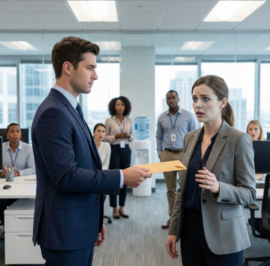 Następnego ranka założyłem najlepszy garnitur, wszedłem do biura i skierowałem się prosto do skrzydła działu HR. Emily zauważyła mnie przy windach. Podeszła pewnym krokiem, obcasy głośno stukały o podłogę.