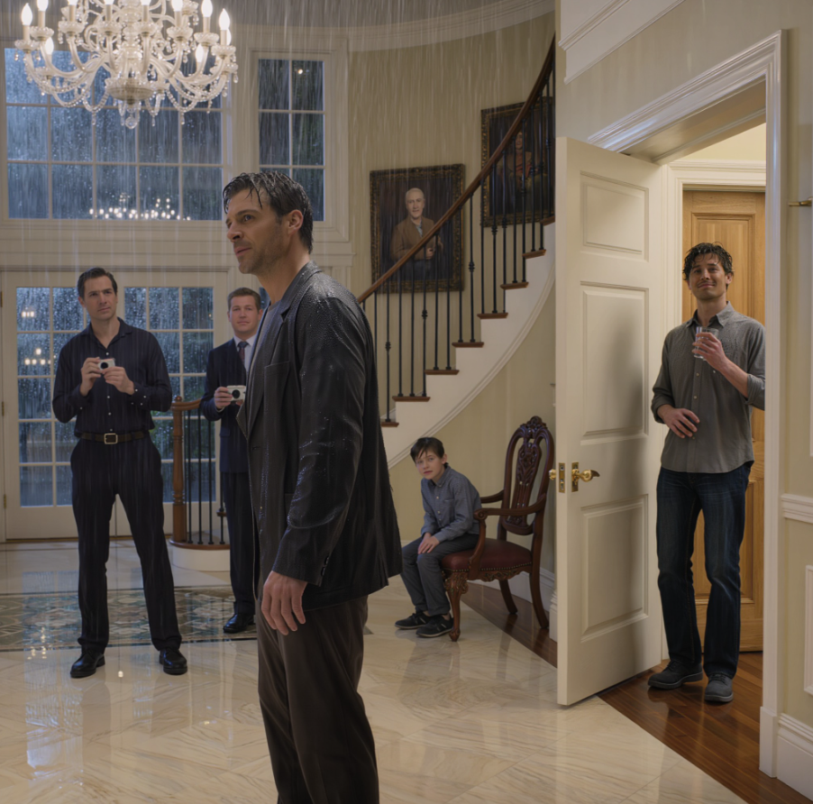 Ethan siedział na krześle, zapłakany, trzymając nogi złączone. Veronica stała z boku. Jej matka obserwowała wszystko chłodno. Kenny śmiał się, trzymając szklankę wody.