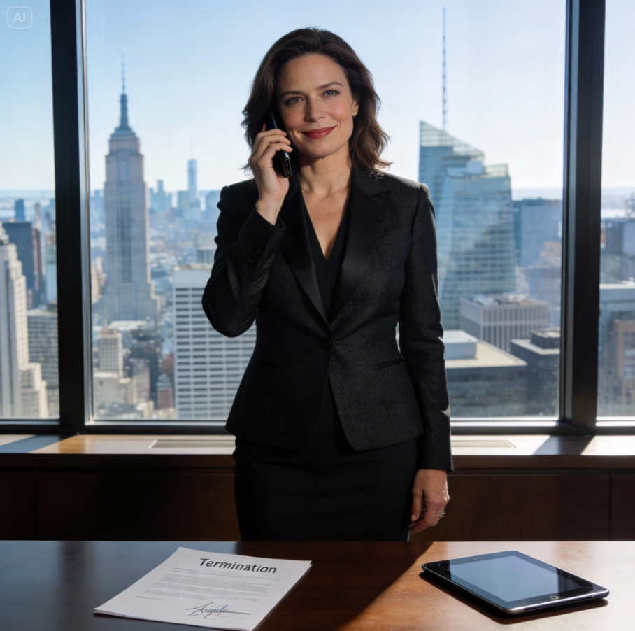 A w tej samej chwili jej syn siedział w sali konferencyjnej, czekając na informację, że jego stanowisko zostaje zlikwidowane.