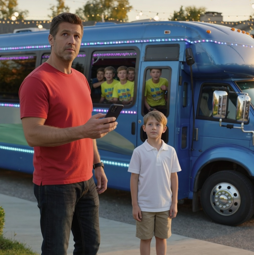 Zarezerwowałem autobus imprezowy za 4200 dolarów jako niespodziankę urodzinową dla mojego syna. Kiedy podjechał pod dom, dzieci mojej siostry już wsiadały do środka — wszystkie w identycznych koszulkach. Kierowca spojrzał na kartkę i odczytał na głos: „Dzisiejsza trasa — świętowanie”. Ojciec wzruszył ramionami.