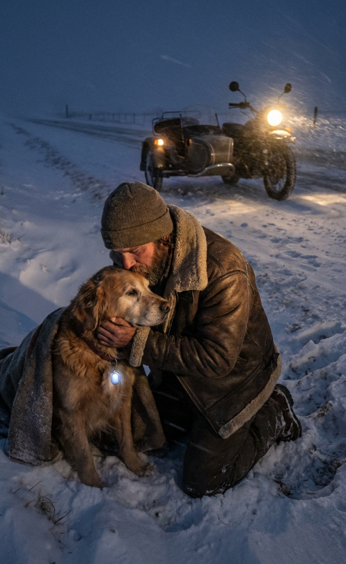 Leżał częściowo przysypany śniegiem, zwinięty w kłębek, jakby próbował zniknąć. Jego złota sierść była przytłumiona lodem i brudem, a ciało trzęsło się tak mocno, że nawet z kilku metrów słyszałem ciche stukanie kości o kości.