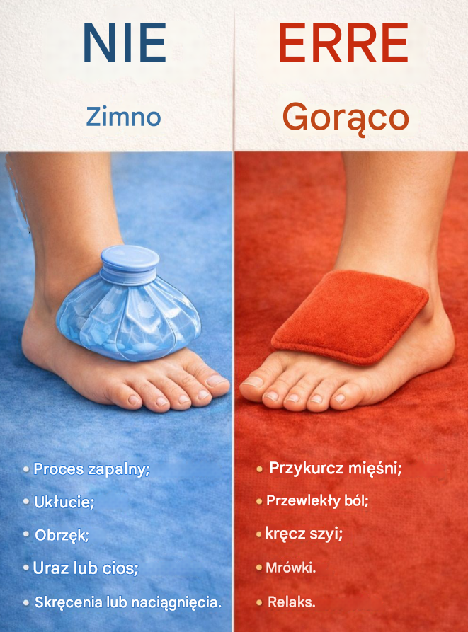 ❄️ Kiedy stosować ZIMNO (ból ostry, świeży uraz)
