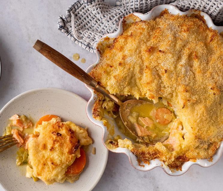 Ten przepis, przypisywany Rudolfowi, to klasyka w nowoczesnym wydaniu. Łosoś i dorsz dostarczają bogatego smaku i wartości odżywczych, a połączenie ziemniaków, pasternaku, pora i marchewki sprawia, że zapiekanka jest jednocześnie łagodna, wyrazista i doskonale zbalansowana.