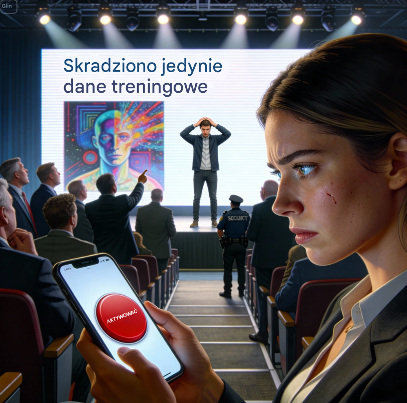 Damien chwycił mikrofon. „To — to żartobliwy prompt” — powiedział zbyt ostrym głosem. „Model jest odporny. Proszę patrzeć.”