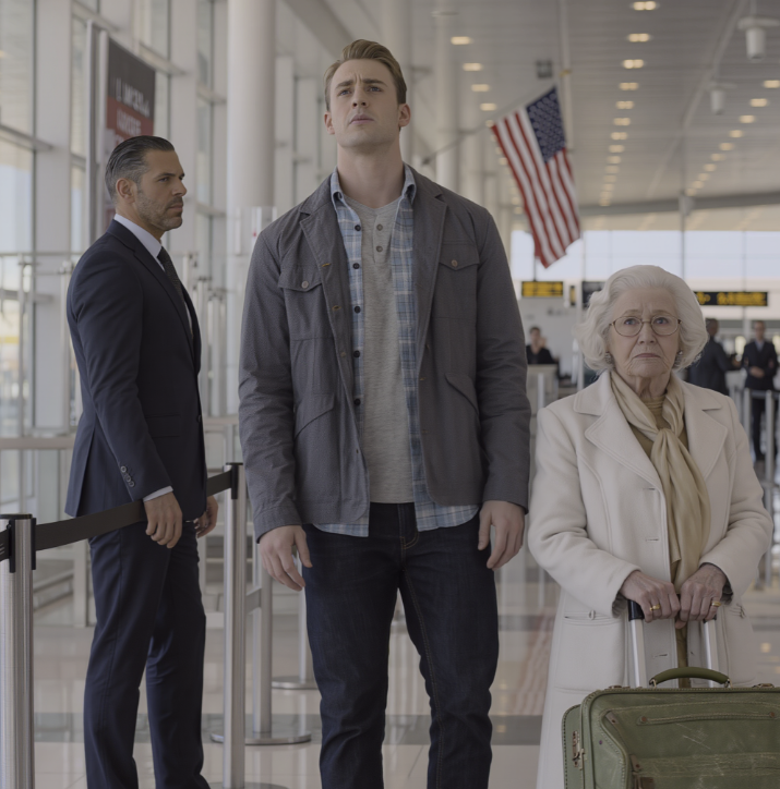 Pojawia się zdjęcie: ja i moja babcia, Hazel Draper, na lotnisku Hartsfield-Jackson w Atlancie. Za nami wisi ogromna amerykańska flaga, a pod nią tłum podróżnych i toczących się walizek.