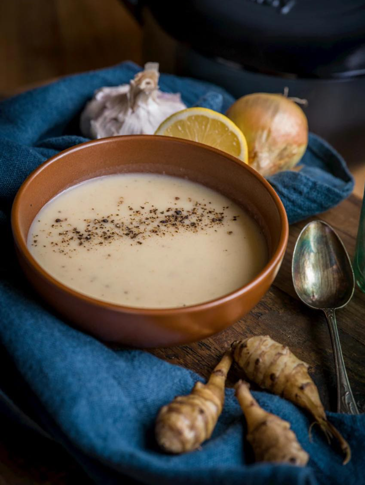 Kilka dni temu mój sąsiad tutaj w Tunhem skontaktował się z nim i zapytał, czy chcę trochę karczochów jerozolimskich, a odpowiedź brzmiała od razu tak! To naprawdę jedna z moich ulubionych zup, która ma unikalny smak, jest sycąca i dobra, najlepiej z dobrym chlebem. Jeśli jeszcze nie próbowałeś, gorąco polecam!